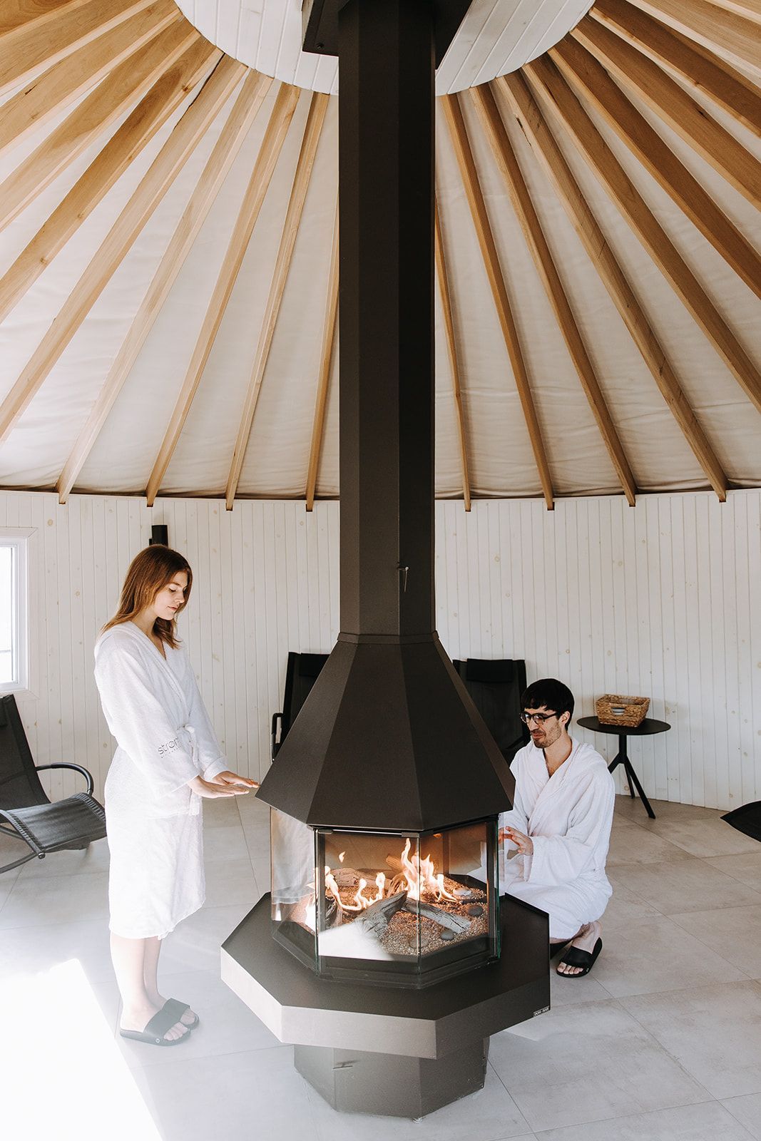 Un modèle octogonal qui, avec ses coins tronqués, occupe moins d'espace et facilite la circulation. Un style unique et surprenant qui permet à chacun d'avoir une vision frontale sur le feu. Le modèle illustré ici est muni d'une hotte décorative optionelle. Vous pourrez opter pour le chauffage au bois, au gaz (naturel ou propane) ou même à l'éthanol. Un autre design unique de Don-Bar!