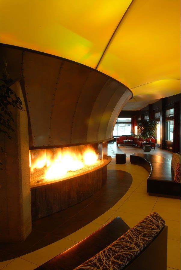 Nous avons réalisé des projets surprenants comme la fabrication d'un foyer au bois pour installer dans l'Hotel de Glace à Québec. Il a fallu user d'imagination pour traverser un toit de glace avec une cheminée qui produit de la chaleur. Le foyer au gaz monumental que nous avons réalisé pour le Grand Hotel Times à Québec mérite aussi une visite!